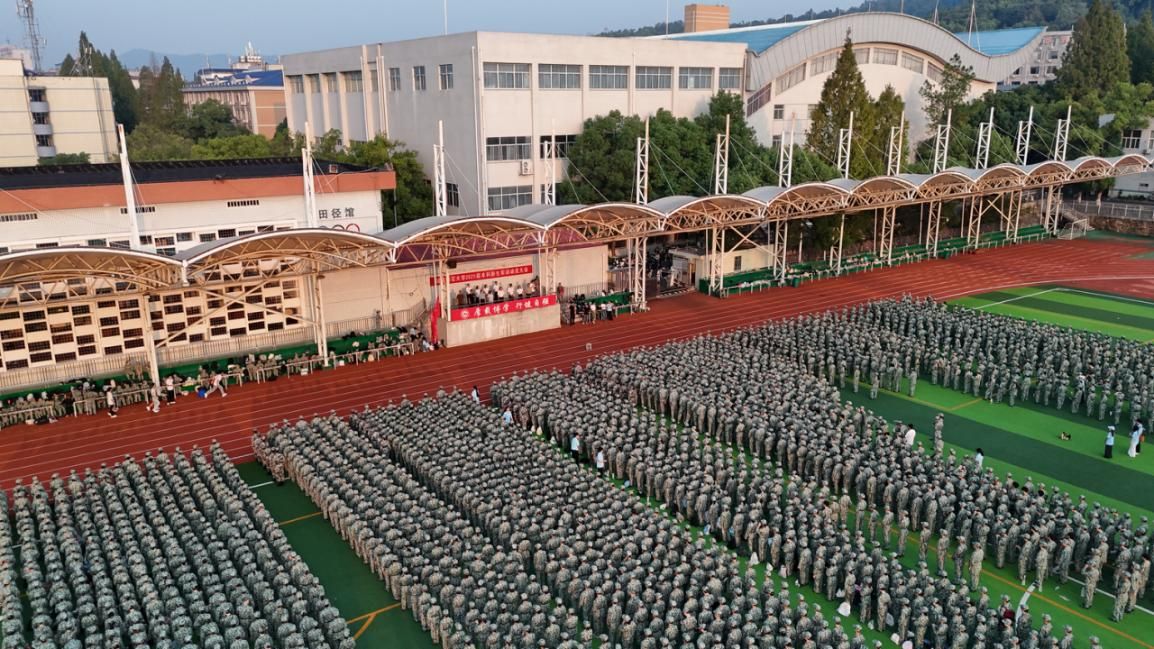 (供稿 学生工作部)10月9日清晨,伴随着雄浑激昂的《义勇军进行曲》,我校五校区同升国旗仪式暨2025级本科新生军训动员大会举行。副校长、校国防教育工作领导小组副组长王辉出席大会并讲话。学生工作部、武装部部长、军训团团长陈文雄,各学院党委副书记、新生辅导员及九千余名2025级本科新生参加大会。