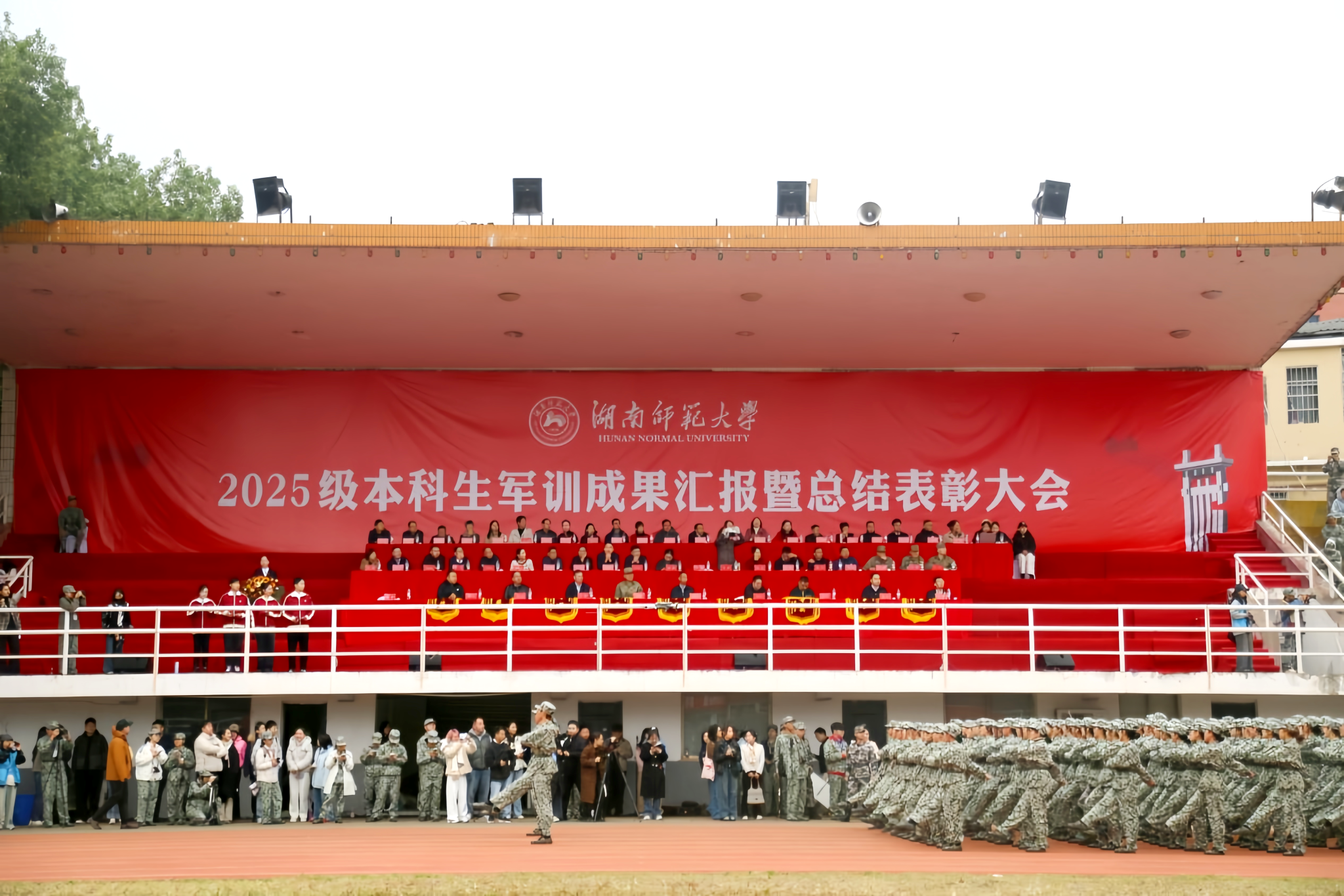 (记者 周博文 干惟晟 吕海霞)10月22日上午,我校2025级本科生军训成果汇报暨总结表彰大会在二里半校区田径场举行,各学院的同学们身着戎装、精神饱满,接受检阅。省教育厅体育卫生与艺术教育处二级调研员傅联红,岳麓区人民武装部部长余岱民,我校党委委员、副校长王辉,校军训工作领导小组成员、各职能部门和学院负责人一同检阅了2025级本科生军训成果。大会由学生工作部、武装部副部长、军训团政委段婷主持。