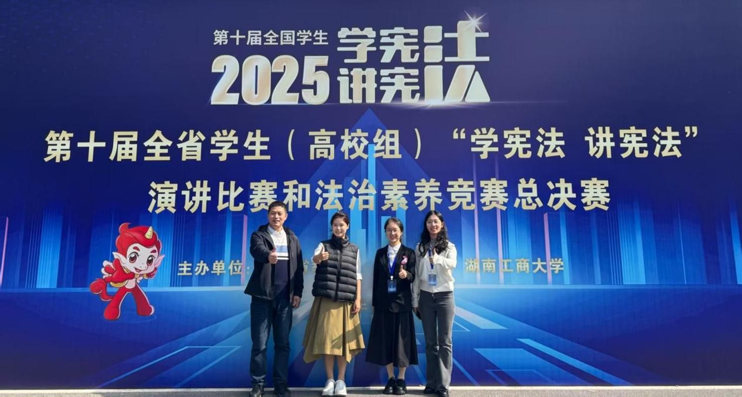 (记者 李洋)近日,在省委教育工委、省教育厅主办的第十届全省学生(高校组)“学宪法 讲宪法”演讲比赛和法治素养竞赛总决赛中,我校法学院学生宋垚获法治素养竞赛特等奖,并作为湖南省大学生代表参加全国总决赛,新闻与传播学院学生张语航获演讲比赛三等奖。