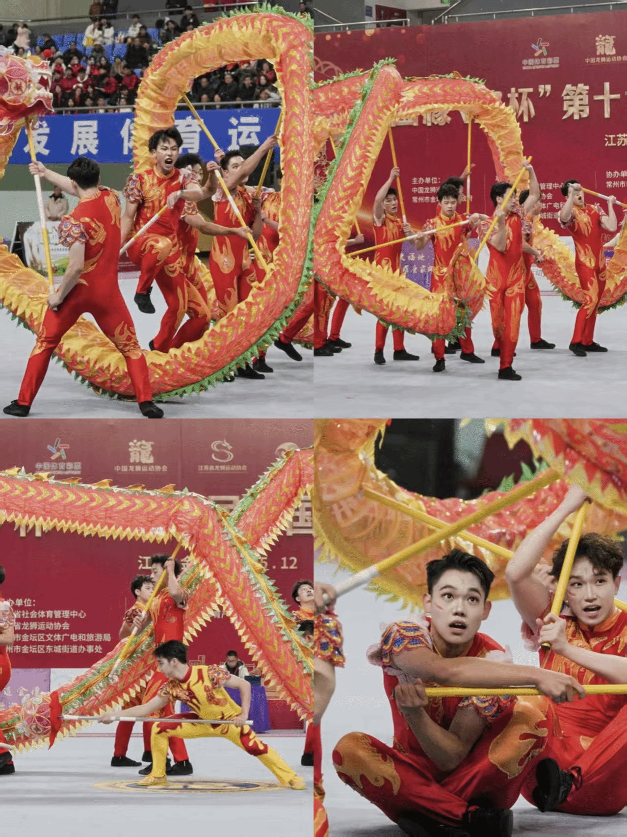 (供稿 体育学院)12月9日,“国缘V3杯”第十七届全国舞龙舞狮锦标赛在江苏常州圆满收官。我校龙狮团共派出42名运动员,由体育学院党委书记李波担任领队。运动员们发扬龙狮精神、演绎精彩技艺,共斩获两金两银的佳绩,其中男子规定舞龙、传统舞龙项目均获第一名,男子规定北狮、女子自选舞龙项目均获第二名,展现了中文博彩平台学子的风采与中华文化的魅力。