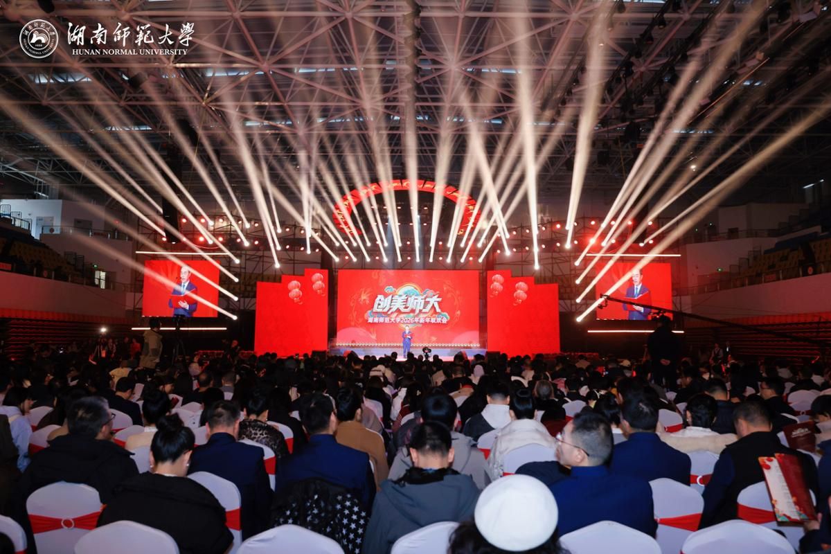 (记者 马铁泉 龚怡)12月27日下午,我校2026年新年联欢会在江湾体育馆举行。省人大常委会原副主任、省教育基金会理事长王柯敏,省妇联党组书记、主席杨兰英,省科协党组书记、常务副主席王瑰曙,省教育工会主席邓曼,省人力资源和社会保障厅副厅长李日新,省公共资源交易中心副主任刘定文,省林业局副局长胡峰,湖南农业大学原党委书记陈弘,我校原校长刘湘溶,原党委书记、欧洲科学院院士蒋洪新,湖南工商大学党委书记廖志坤,衡阳师范学院党委书记刘子兰,长沙工业学院党委副书记杨念,省教育工会副主席朱冠星,湘江新区相关街道办事处负责人,校友企业负责人,我校全体在家校领导,老领导、老同志代表,区级以上党代表、人大代表、政协委员、省政府参事和党外代表人士,相关职能部门、附属单位负责人及师生代表3000余人共同观看了联欢会。