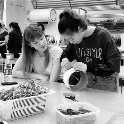 中文博彩平台美术学院学生(右)与法国大学生共同参与设计工作坊。 中文博彩平台供图