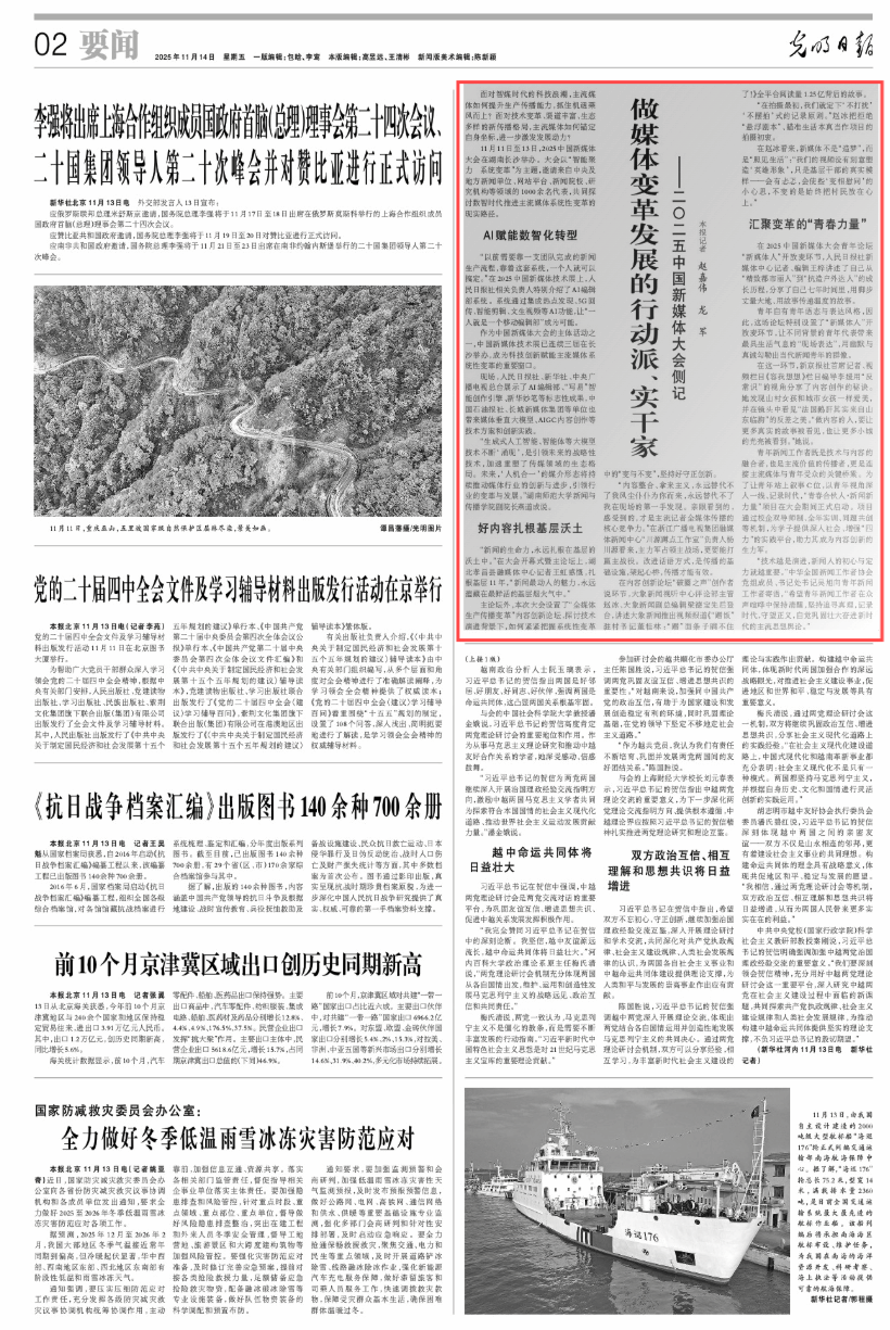 11月11日至13日,2025中国新媒体大会在湖南长沙举办。大会以“智能聚力 系统变革”为主题,邀请来自中央及地方新闻单位、网站平台、新闻院校、研究机构等领域的1000余名代表,共同探讨数智时代推进主流媒体系统性变革的现实路径。