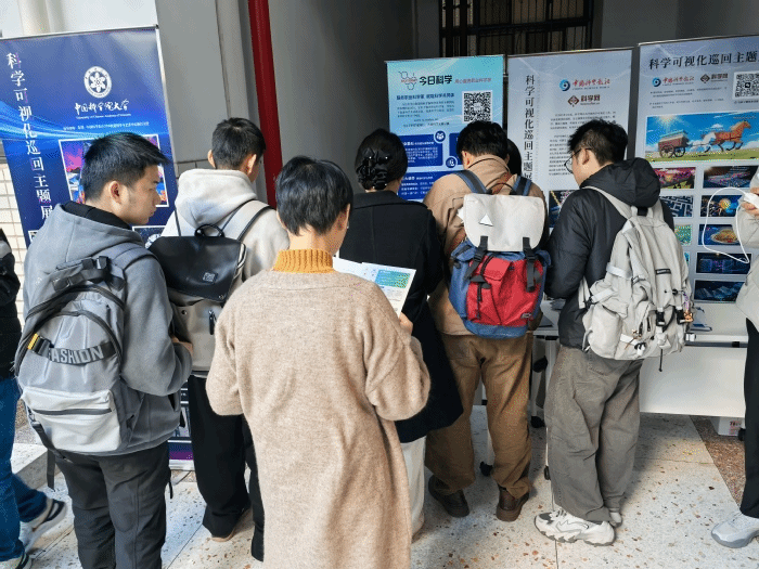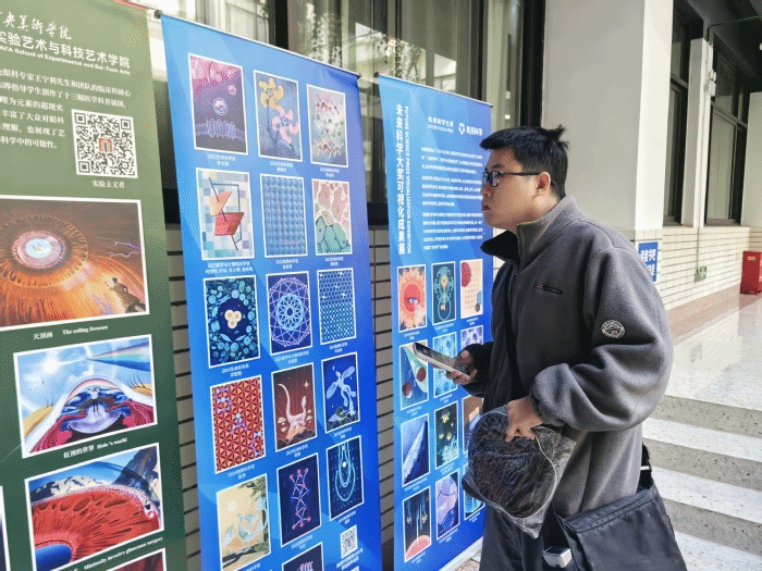 本次活动理念为“科艺交融·视界未来”,旨在倡导通过视觉化技术将复杂的科学概念、数据与过程转化为兼具专业性与感染力的艺术作品,展现科学之美与艺术之思的共生关系,助力科技创新成果的传播与应用。主题展内容新颖丰富,汇聚了科学可视化封面、插图等多种类型的艺术设计作品,现场共有7家机构参与,通过十余块展板向师生全面呈现科学可视化成果及相关学术信息。